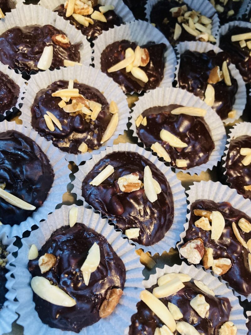 Each piece blends fresh squeezed cherry into rich, velvety infused chocolate (dark and milk) and a premium mix of roasted nuts (pecan and walnut). Made with the cherries from our tree out front, RSO, Full Spectrum Hippe Sugar, Green Dragon Vanilla Tincture, toasted and roasted pecans and walnuts and love.